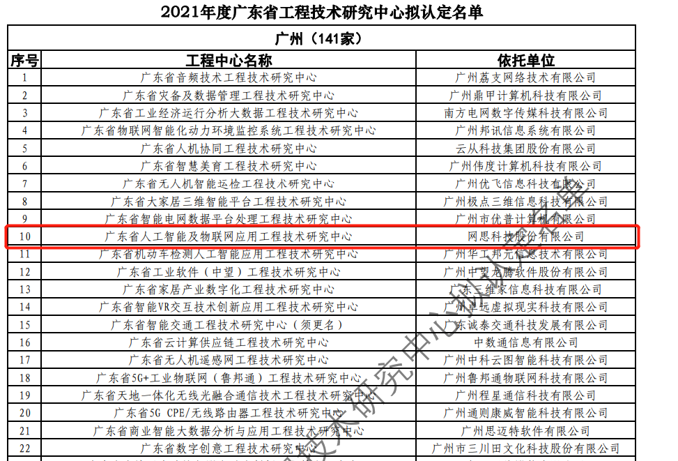 日前,广东省科技厅发布2021年度广东省工程技术研究中心名单。经过层层筛选、专家评审,依托乐竞-乐竞(中国) 建设的“广东省人工智能及物联网应用工程技术研究中心”榜上有名。广东省工程技术研究中心主要依托省内行业、领域具有科技实力的、拥有一定规模以上创新型企业建设,部分依托高校和科研院所组建。工程中心旨在